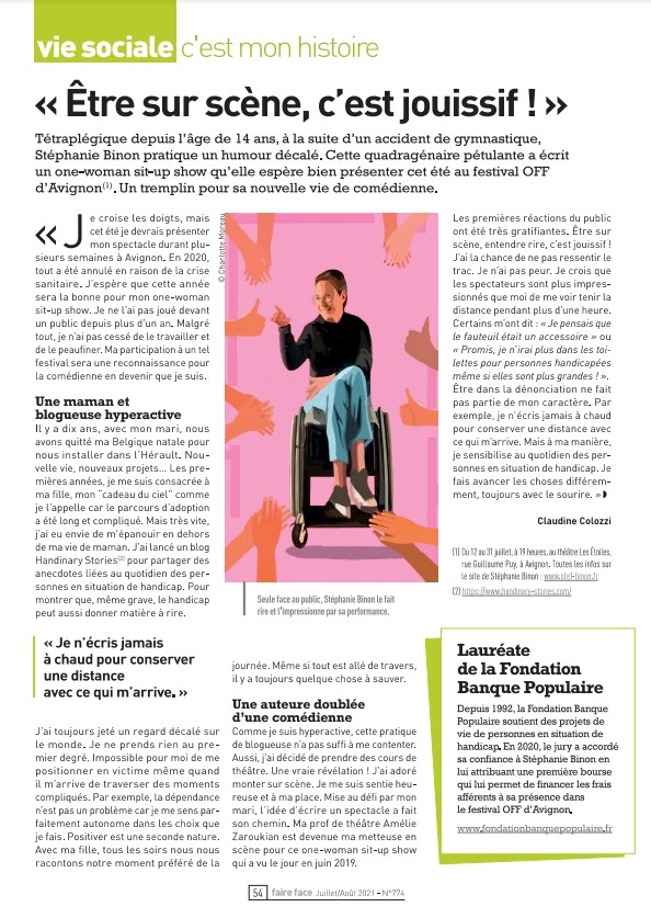 PresseMagazine Faire FaceUn joli portrait « pré-Avignon » à découvrir dans le magazine Faire Face. Un portrait signé Hérault Tribune.Les dix spectacles du Off aimé par le Dauphiné Libéré